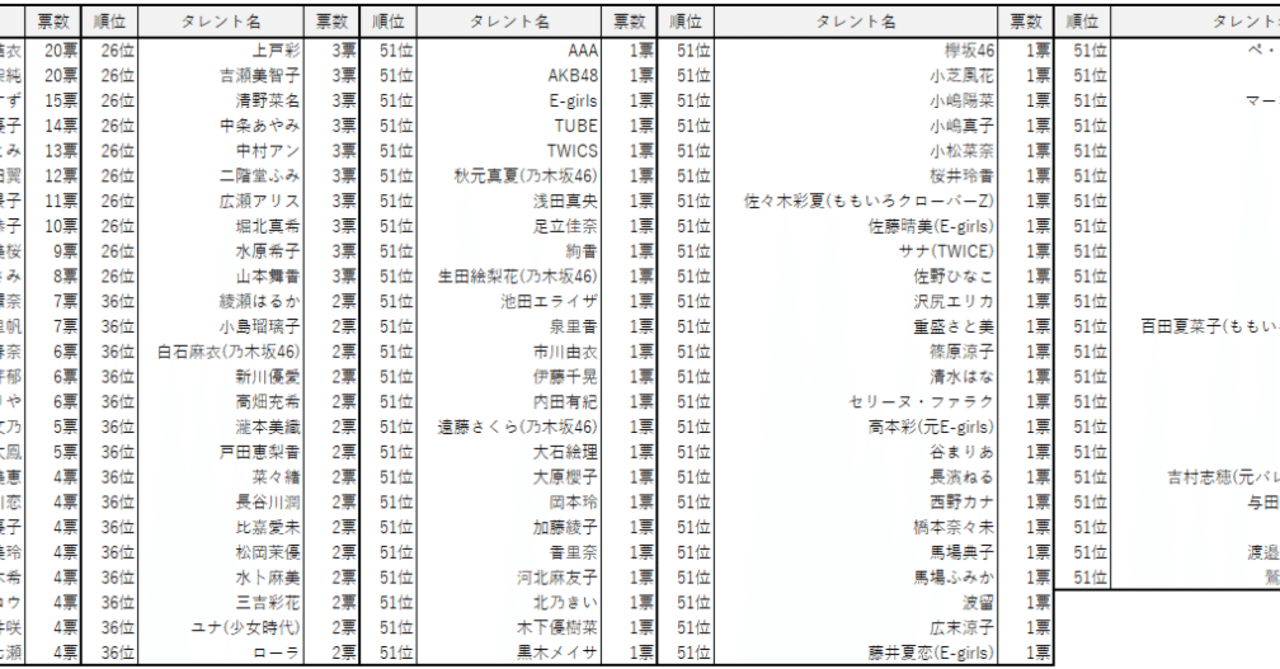 年プロ野球選手による 好きな女性タレントランキング もちたろう Note